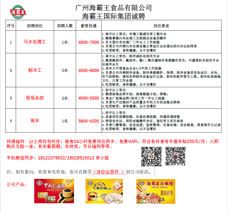 广州海霸王食品有限公司招聘