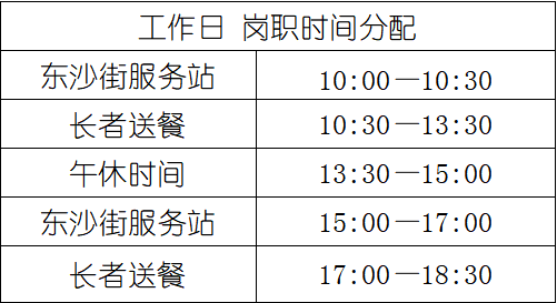 2、为社区指定长者送餐上门。送餐范围:荔湾区东沙街道辖内4社区(金宇、东塱、沙洛、南漖社区),熟悉路况者优先。
